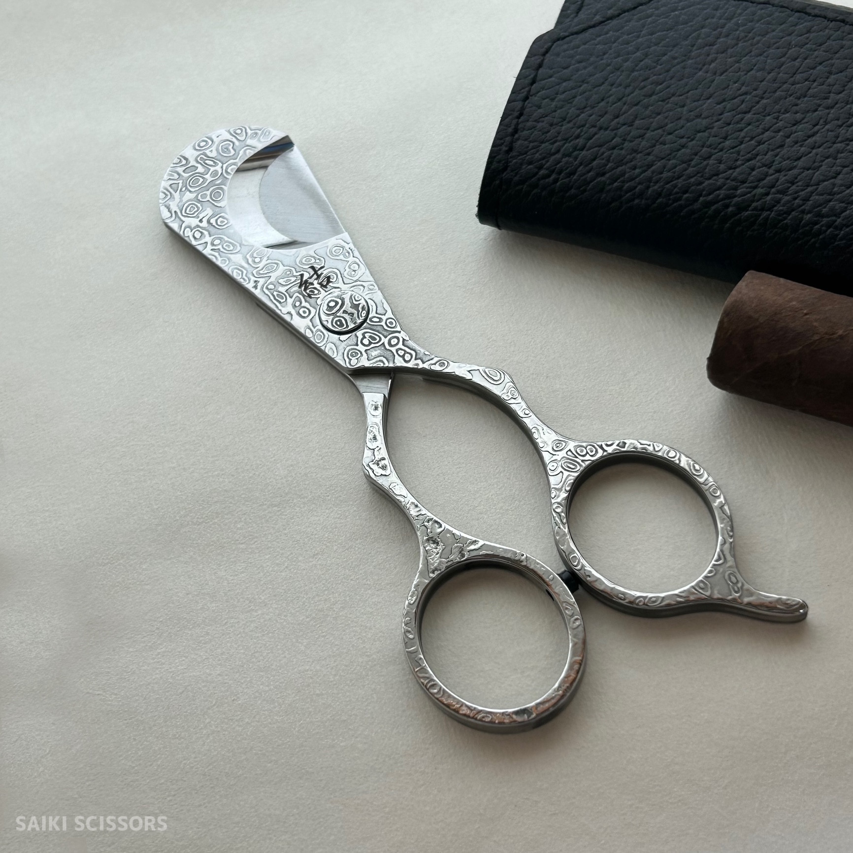 Cigar scissors YUI-Damascus- by SAIKI SCISSORS, a manufacturer of professional scissors for barbers and hairdressers.